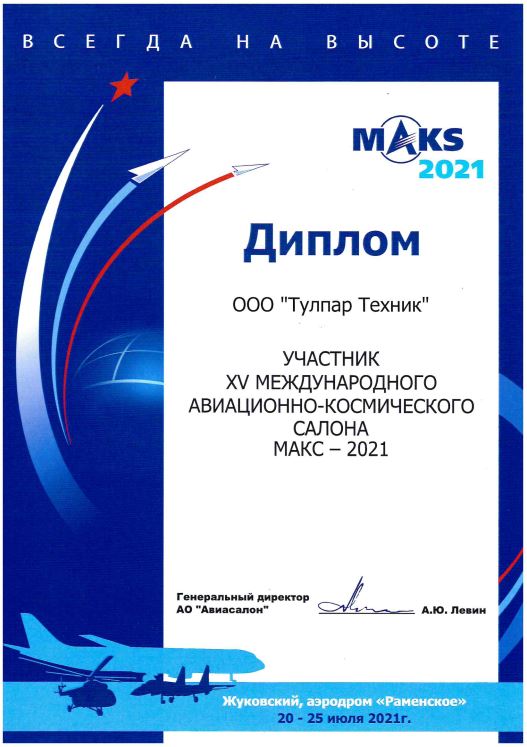 ООО "Тулпар Техник" принял участие в Международном авиационно-космическом салоне МАКС-2021.